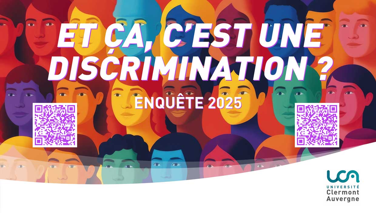 Témoins ou victimes, tous concernés. Dans le cadre de son engagement pour un environnement universitaire inclusif et respectueux, l'Université Clermont Auvergne lance l'enquête "Et ?a, c'est une discrimination ?" édition 2025.